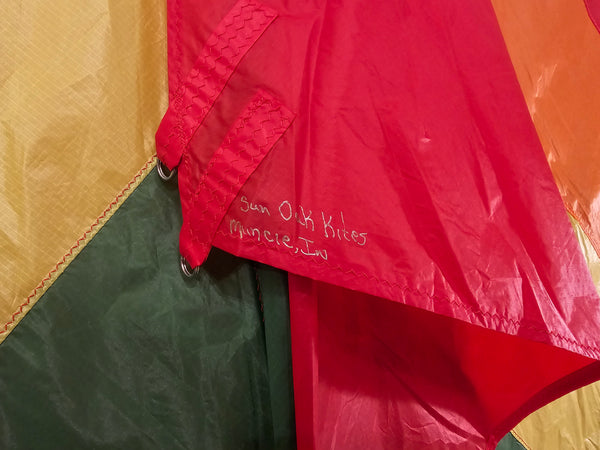 This is a SUPER cool kite made in super light weight ripstop nylon and wooden rods. Made by Sun Oak Kites out of Muncie IN.