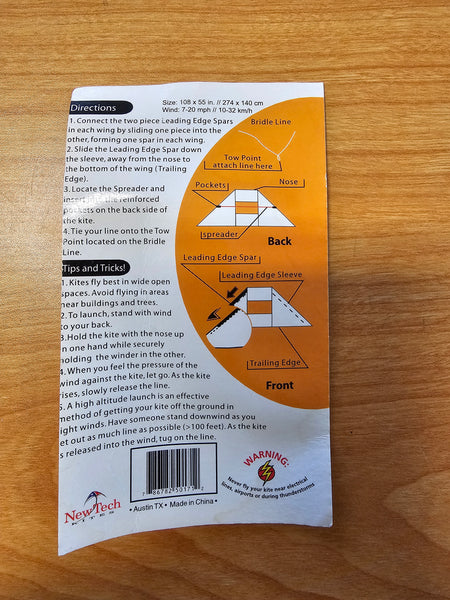Suggested wind range of 7-20mph. 108" wide by 55" tall.