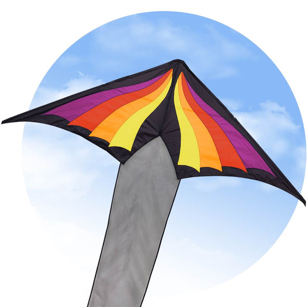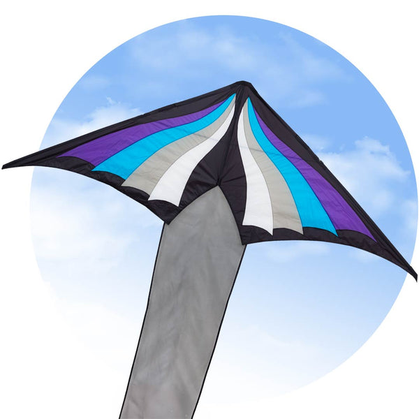 This impressive Delta kite, exclusively designed by Robert Brasington for Invento, combines top-tier craftsmanship with a distinctive design. With a generous wingspan of 6.5 ft. (200 cm) and an astonishing 16.5 ft. (500 cm) long organza tail, this kite offers a majestic flying experience like no other. The unique color scheme, makes this Delta kite stand out and creates a captivating spectacle in the sky. The combination of lightweight, durable materials and elegant lines gives the kite both stability and agility, making it an ideal flying companion in a wide range of wind conditions.