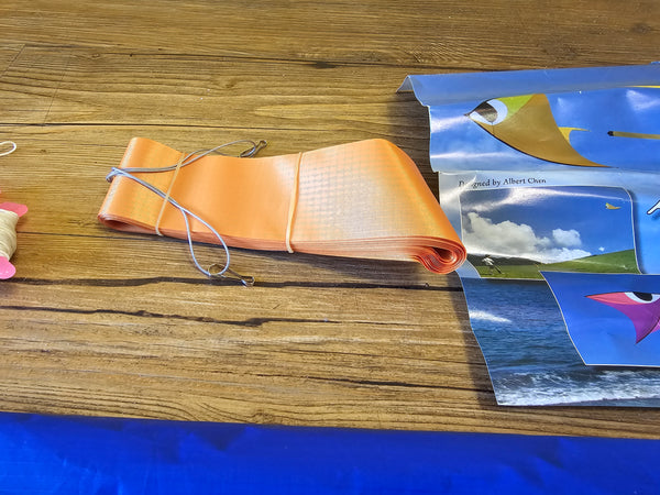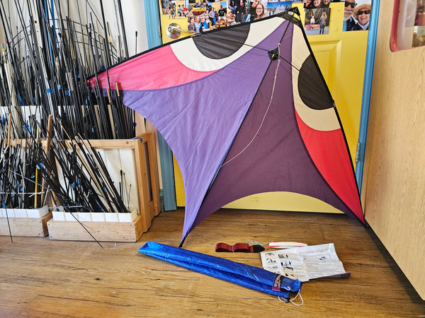 While being sold as previously loved, these Aerobe kites are in impeccable condition. The Purple/Pink looks to be flown once as a glider (the tail is still factory folded and the line appears untouched), and the Yellow/Orange came out of the bag with factory folds across the sail too. These are a fantastic find for anyone looking to fill in their selection of kites that will fly from indoor to mid wind.