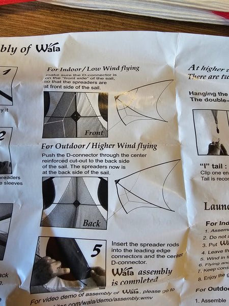 Wala(Aerobe) is designed to "glide' in both indoor and outdoor no wind to low wind conditions. It is very balances and can be controlled to glide elegantly by pulling or releasing the flying line. It can also be flown as a traditional single line kite in low to mid wind conditions. |